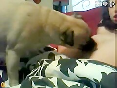Cute chick puts peanut butter on her pussy and asshole and lets her dog lick