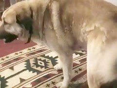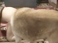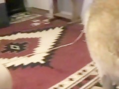 Madura rubia con perro salido
